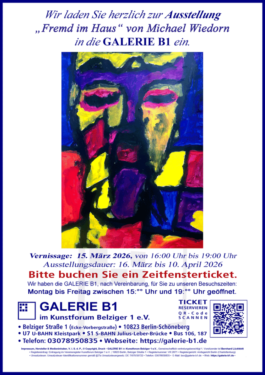 Kunstforum Belziger 1 | Wir bieten Ihnen | Öffnungszeiten | Einlass | Veranstaltungen | Programm | Künstler | Online Reservierung | Tickethotline | Kontakt | Schreiben Sie uns | Standort | Informationen | Rezitation mit J. Ebbing | Wir über uns | Unser Service für Sie... | Vermietung | Restaurant | Partner | Nutzungsbedingungen | Impressum | Rechtswesen | Sitemap | GALERIE B1 | Beste Flammkuchen | Hosted by 3W-Hosting | Partner: NKKunst | Atelier Edward P. | H.D. Kühn |